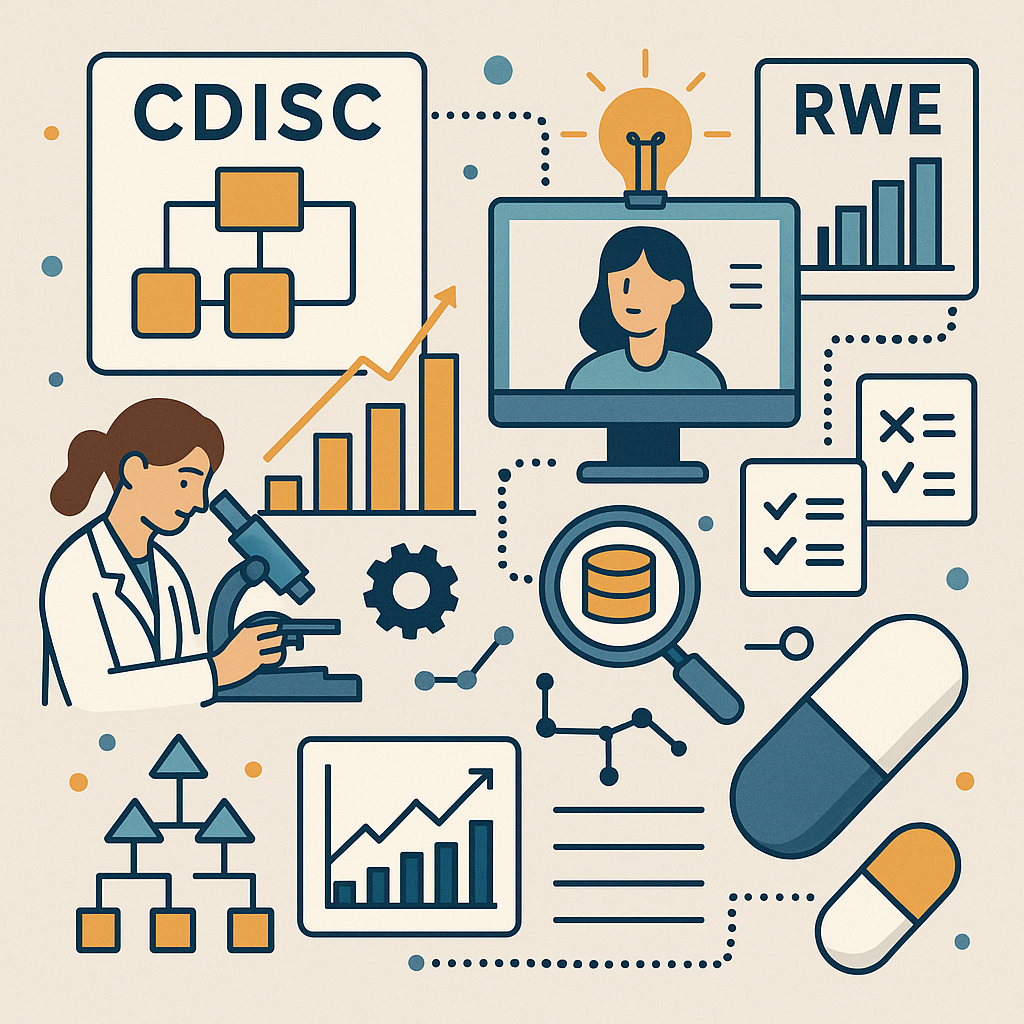 • RWD에서 RWE로: CDISC 표준 데이터를 기반으로 RWD를 통합하는 과정에서, 특히 RWD의 편향성을 AI/통계적 보정으로 해결하는 것이 중요하다. AI/ML 모델은 복잡한 공변량을 분석해 RWD를 표준 임상 데이터와 통계적으로 균형을 이루도록 조정한다. 이는 RWD를 규제기관이 신뢰할 수 있는 임상 근거(RWE, Real-World Evidence)로 격상시키는 중요한 역할을 한다.